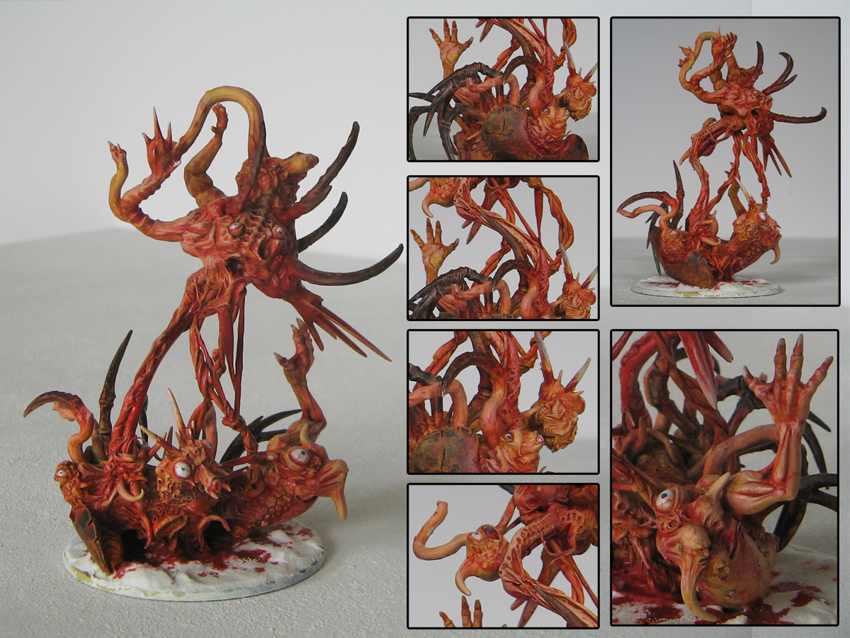 All bits and pieces are from the plastic chaos spawns (GW), should you like convert one of these for yourself.